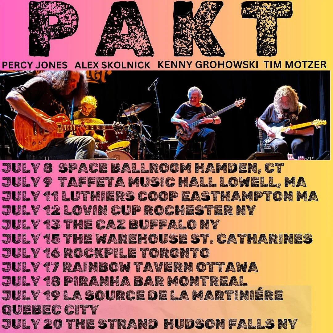 PAKT Featuring the legendary bassist Percy Jones, guitarist Alex Skolnick, drummer Kenny Grohowski, and atmospheric guitarist Tim Motzer on tour 8/26 - 9/7 in the US. Ticket links below.
