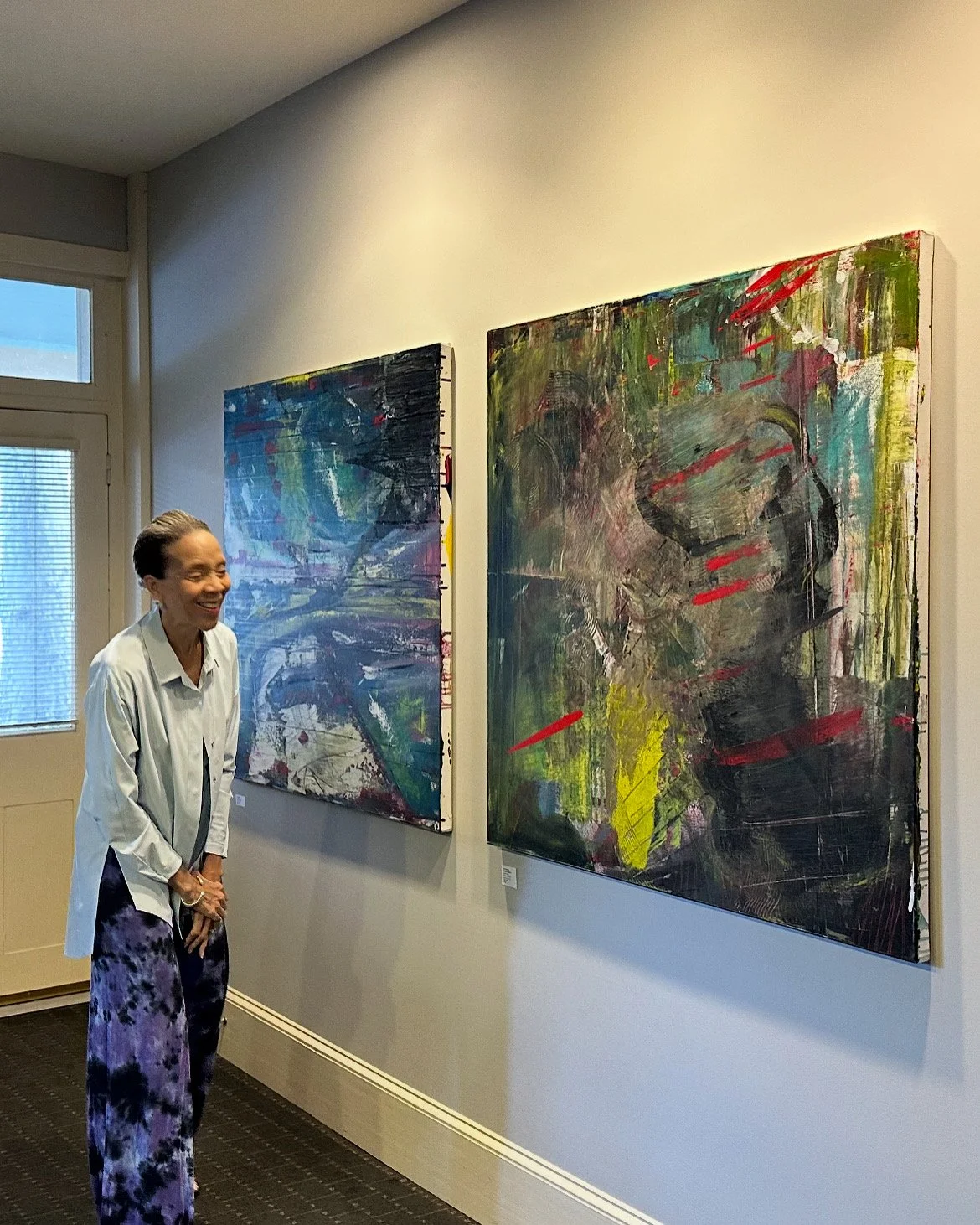 Explore Improvisations in Color (2017–2024)—a striking body of large and small abstract work that blurs the line between painting and performance. Tim will be in the studio all weekend to talk process, sound, and inspiration—and if something speaks to you, originals will be available for purchase.